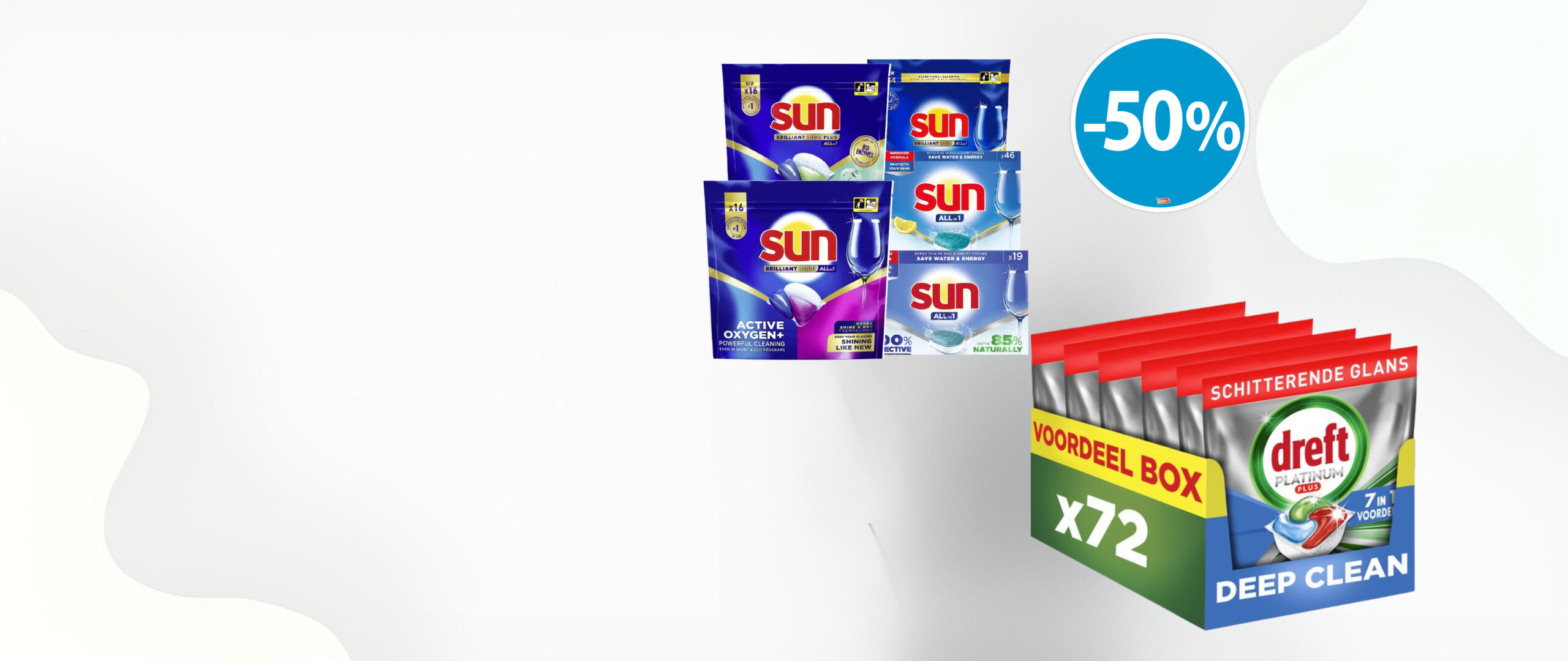 Topmerken & voordelige alternatieven: bekende merken zoals Finish, Dreft en Sun én betrouwbare huismerken
